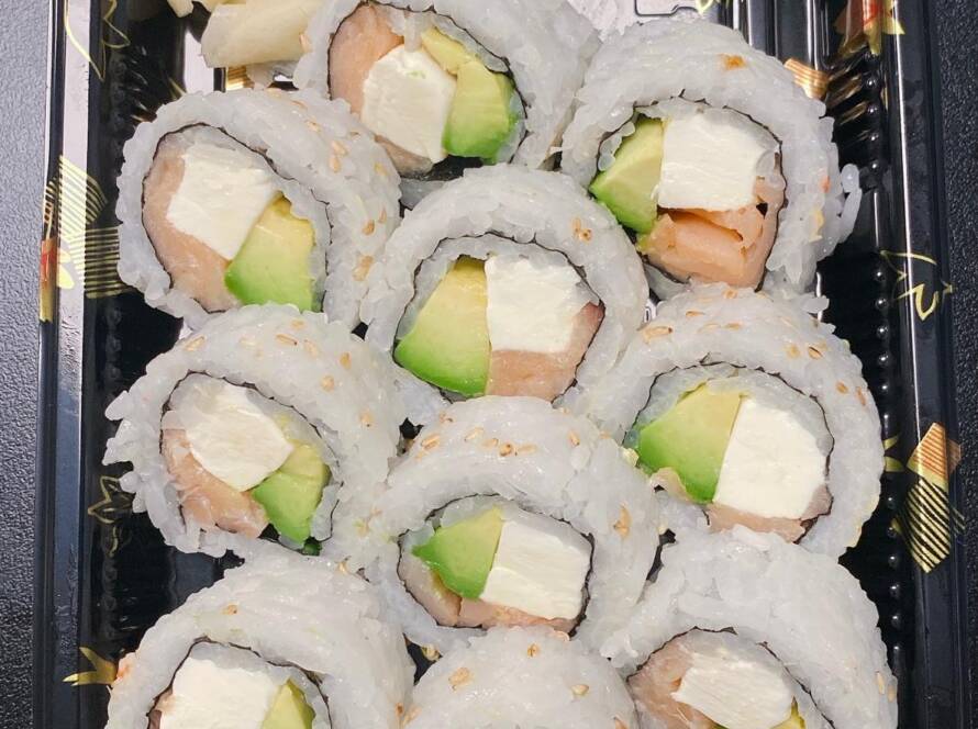 Ingredients: Sushi Rice (White Rice, Water), Imitation Crab (Water, Fish Protein [Alaska Pollock, Pacific Whiting, Sugar, Humectant (sorbitol), Tetrasodium Pyrophosphate, Sodium Tripolyphosphate], Modified Tapioca Starch [Acetylated Di-starch Phosphate], Wheat Starch, Fructose Syrup, Soy Protein, Isolated Soy Protein, Soybean Oil, Sugar, Salt, Crab Extract [Flavor Enhancer: Disodium Guanylate, Disodium Inosinate], Color [Cochineal Extract, Paprika Oleoresin], Flavor Enhancer (Disodium Guanylate, Disodium Inosinate]), Cucumber, Avocado, Vinegar (Sugar, Grain Vinegar, Water, Salt, Brown Sugar [Sugar, Molasses]), Mayonnaise (Soybean Oil, Water, Whole Eggs, Egg Yolks, Distilled Vinegar, Salt, Sugar, Lemon Juice Concentrate, Calcium Disodium EDTA [Used To Protect Quality], Natural Flavors), Sriracha Sauce (Distilled Vinegar, Chile [Peppers, Vinegar, Salt], Aged Cayenne Red Peppers, Red Peppers, Sugar, Tomato Paste, Salt, Red Chile Puree, Garlic, Cayenne Pepper, Garlic Puree, Carrot Fiber, Water, Garlic Powder, Natural Flavors [Soy], Xantham Gum, Potassium Sorbate, Spice, Smoked Paprika, Sodium Bisulfite, Tabasco Brand Pepper Sauce [Distilled Vinegar, Red Pepper, Salt]), Chilli Oil (Soybean Oil, Chili), Seaweed, Sesame Seeds, Sushi Ginger (Ginger, Water, Salt, Sugar, Vinegar, Citric Acid, Acetic Acid, Ascorbic Acid), Wasabi (Water, Natural Wasabi [Horseradish, Mustard, Corn Flour, Spirulina]), Soy Sauce (Water, Wheat, Soybeans, Salt, Alcohol)
